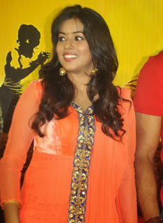 Poorna in Orange Churidar Latest Photos at Thagararu Movie Press Meet